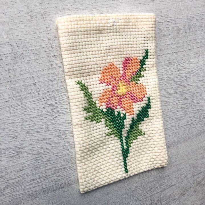 ぷっくりと膨らんだ立体的なクロスステッチ刺繍。